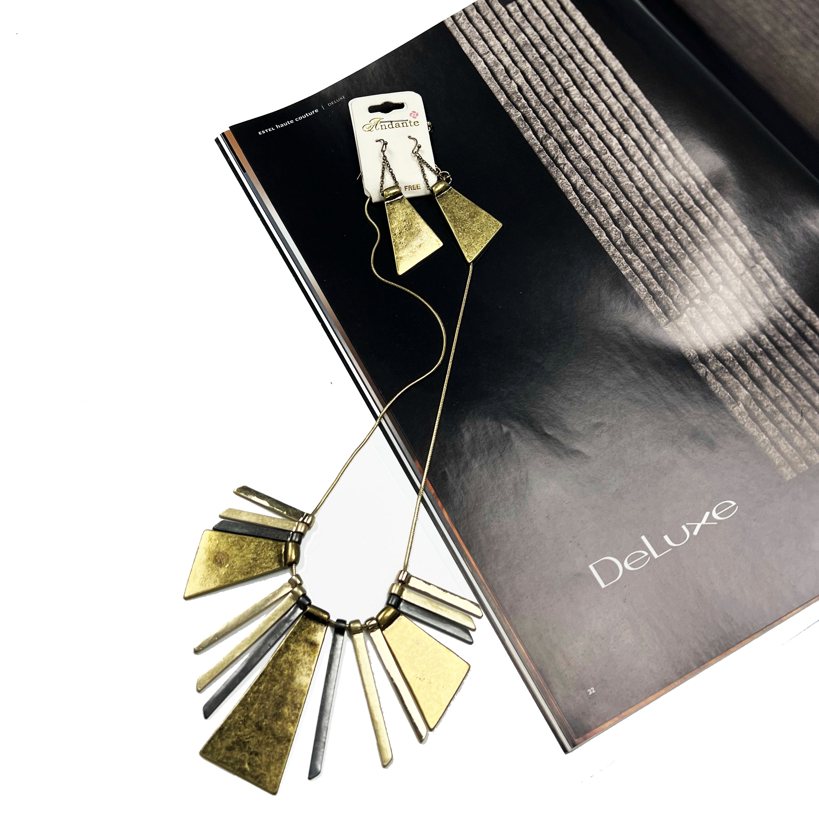 Набор ожерелье 2 цепи угловатая + стразы + 2 кольца
