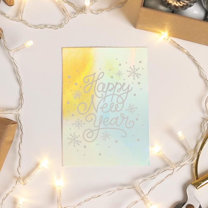 Открытка поздравительная с голографией «Счастливого нового года», 7,5 х 10 см