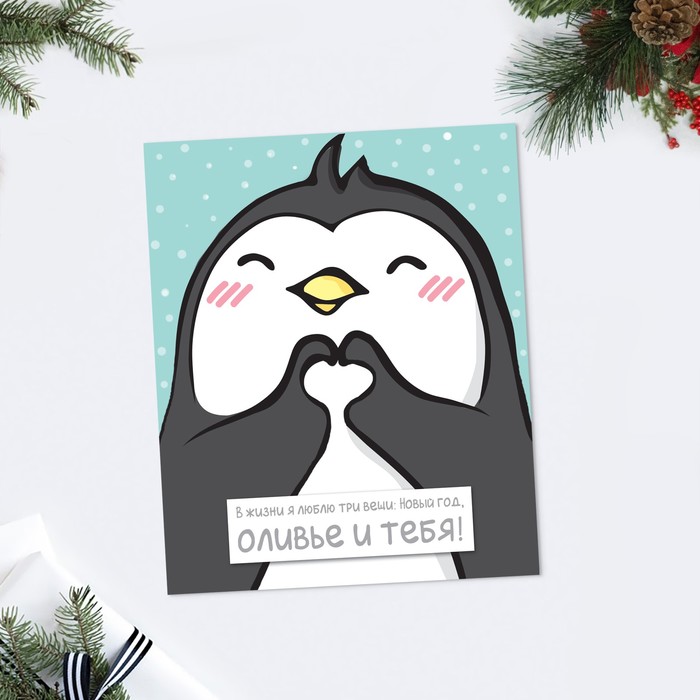 Открытка-карточка «С Новым годом!» пингвин, 8.8 × 10.7 см