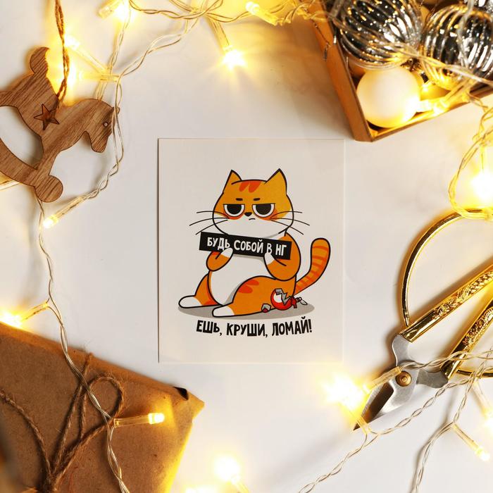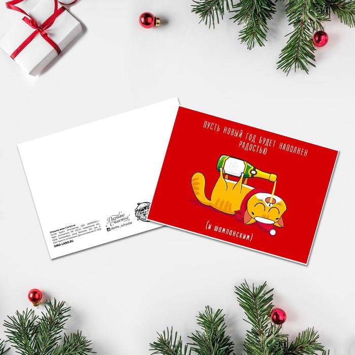 Открытка на каждый день «С Новым годом!» котик и шампанское, 10.5 × 7.5 см