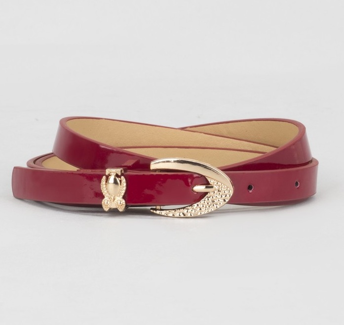 Ремень гладкий лак, пряжка и хомут золото, ширина - 0,8 см