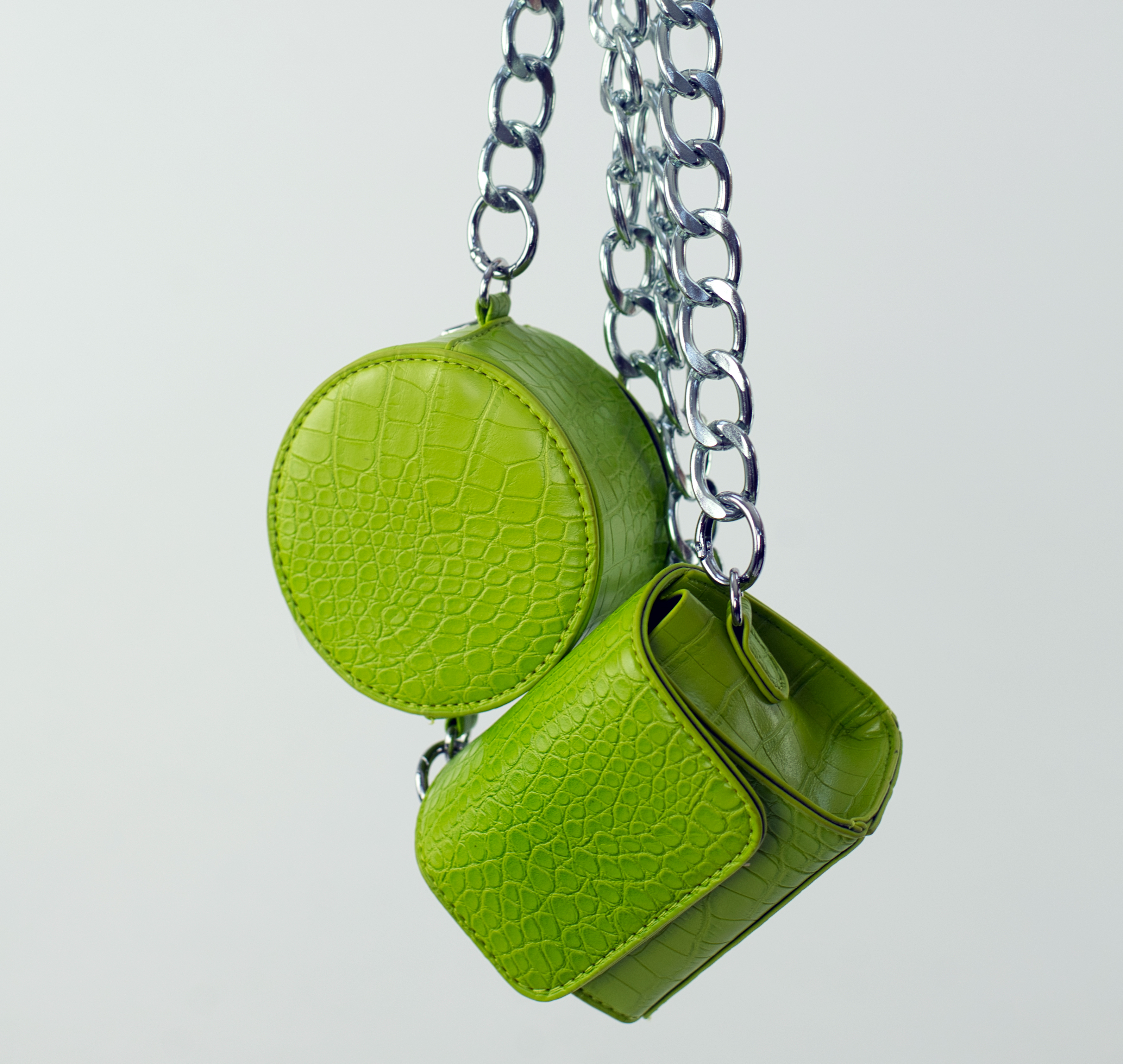 Сумка мини нагрудная квадратная+ круглая на цепочке принт крокодил