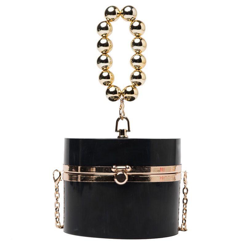 Сумка бокс круглая короткая ручка из бусин + длинная цепочка