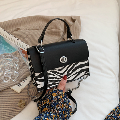 Сумка мессенджер поворотный замок короткая ручка + цепочка принт Зебра