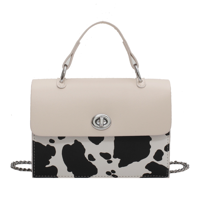 Сумка мессенджер поворотный замок короткая ручка + цепочка принт Коровка