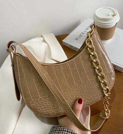 Сумка неровный месяц тиснение крокодил золотая цепь на ручке