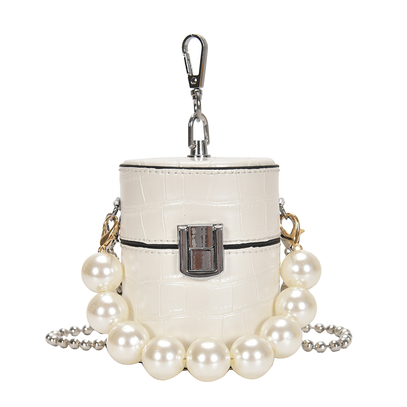 Сумка мини цилиндр короткая ручка из больших бусин + длинная цепочка