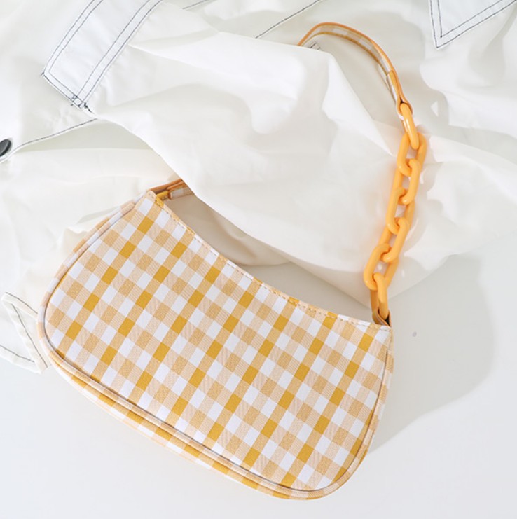 Сумка багет гладкая принт клетка + ручка с акриловой цепочкой