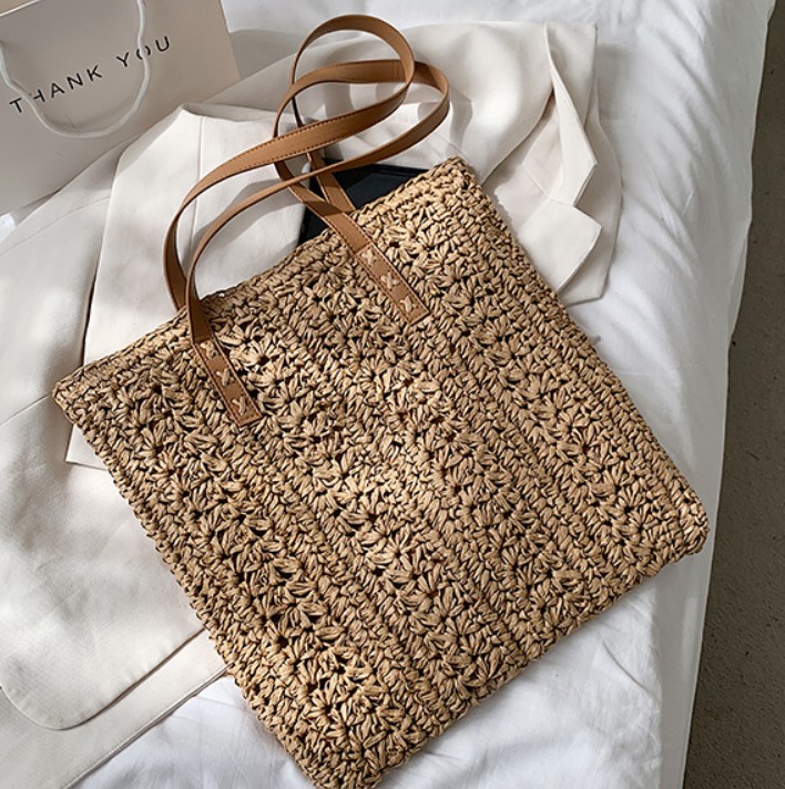 Сумка большая тоут соломенная внутри подклад кожаные ручки