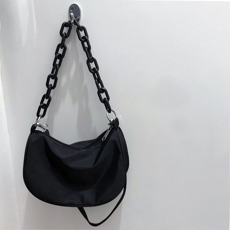 Сумка из нейлоновой ткани черная матовая цепь+ремешок