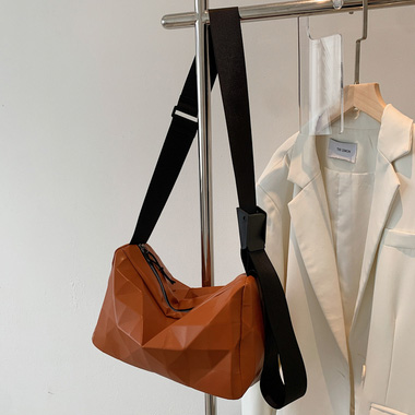 Сумка мессенджер эко кожа широкий текстильный ремень рельеф треугольники