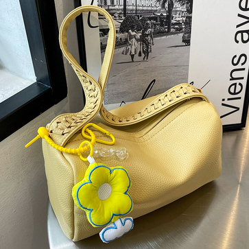 Сумка зернистая эко кожа ремешок с плетением брелок желтый цветок