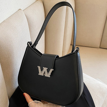 Сумка мессенджер широкая ручка + цепь на клапане буква W в стразах
