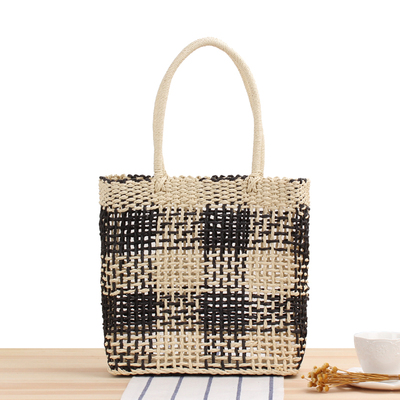 Сумка тоут соломенная плетеная в мелкую клетку