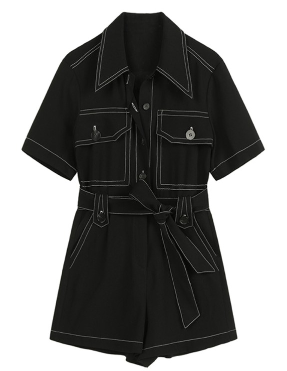 Ромпер белая строчка контур 2 крупных кармана на груди + пояс