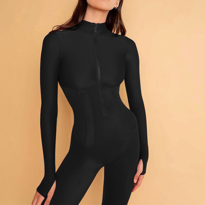 Комбинезон облегающий стрейч на молнии дырки под палец