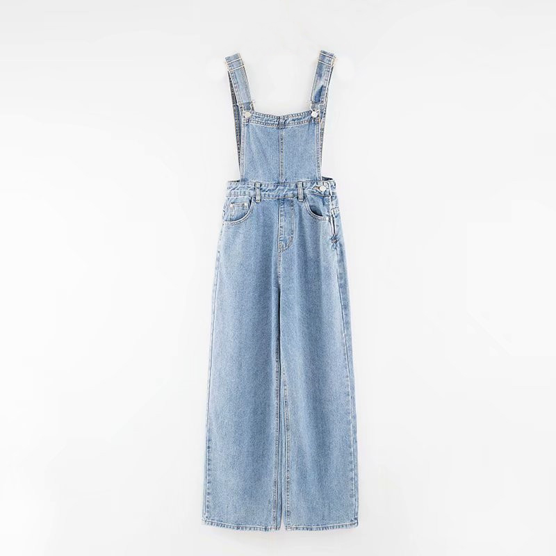 Комбинезон джинс длинный широкий без карманов на груди