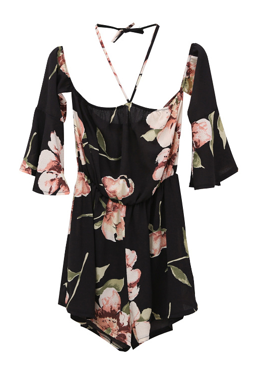 Комбинезон шифон открытые плечи цветочный принт