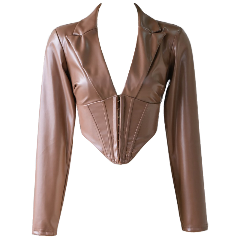 Жакет топ эко кожа длинный рукав спреди как корсет на крючках