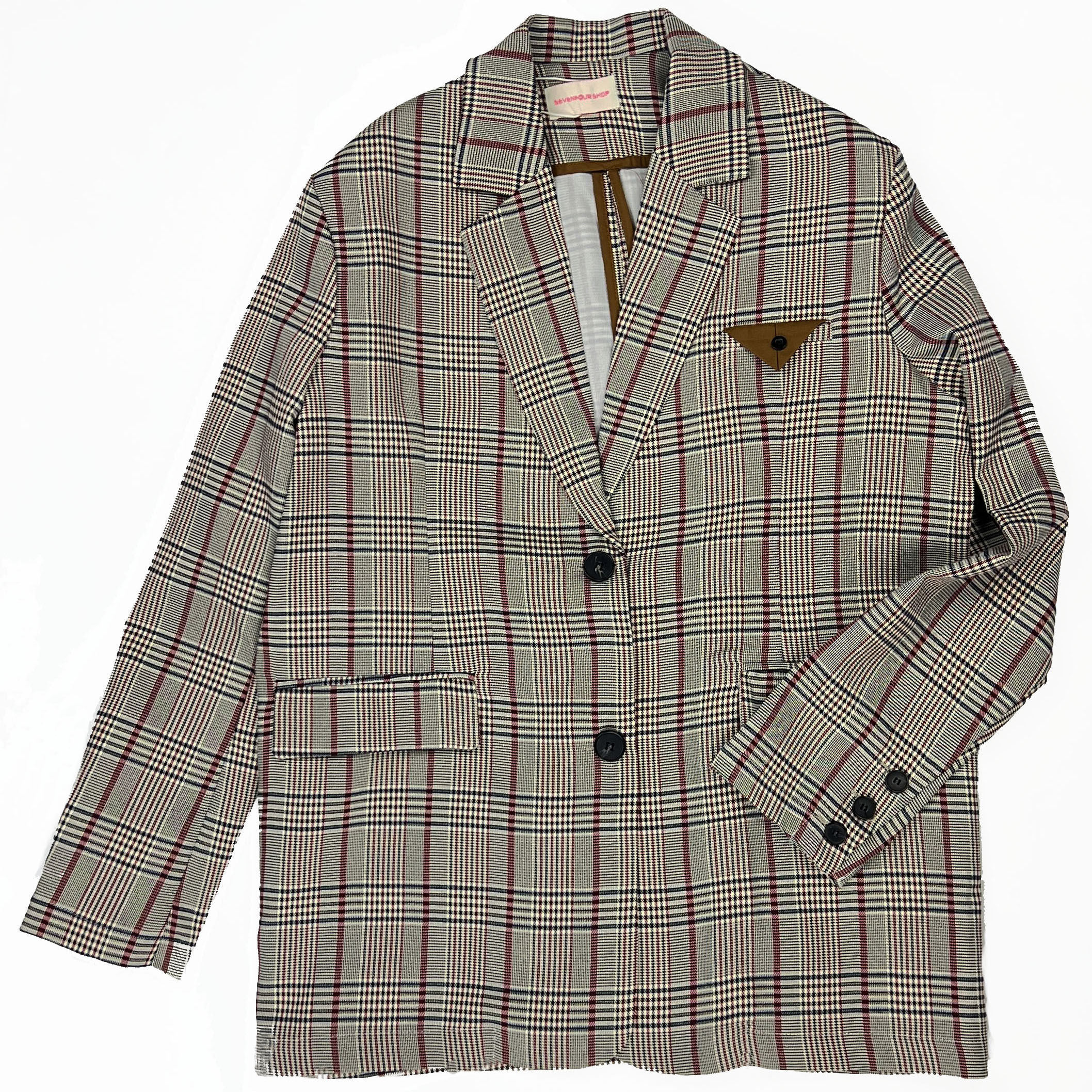 Пиджак oversize 3 пуговицы карман под платок - клетка