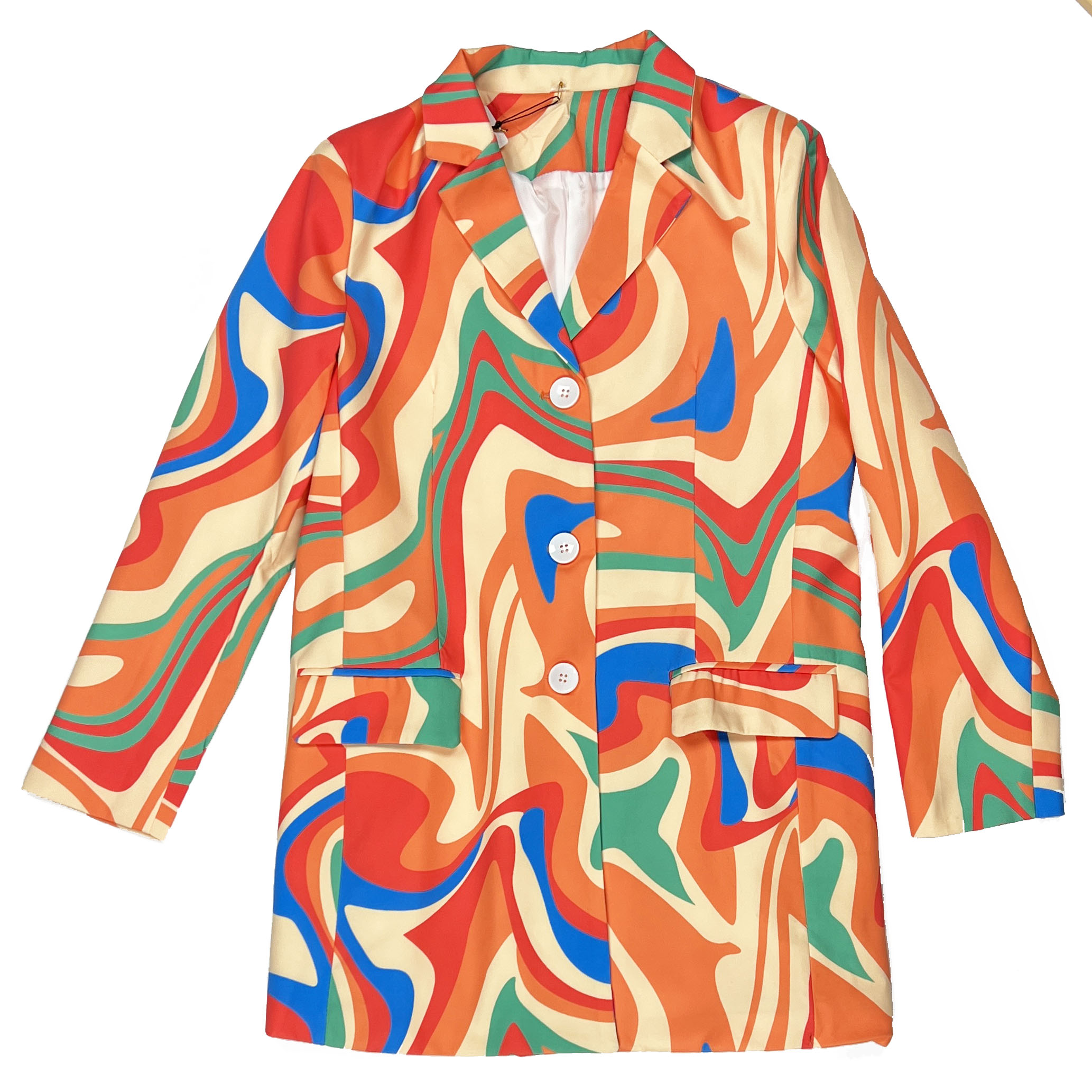 Пиджак oversize яркий принт цветные волнистые разводы