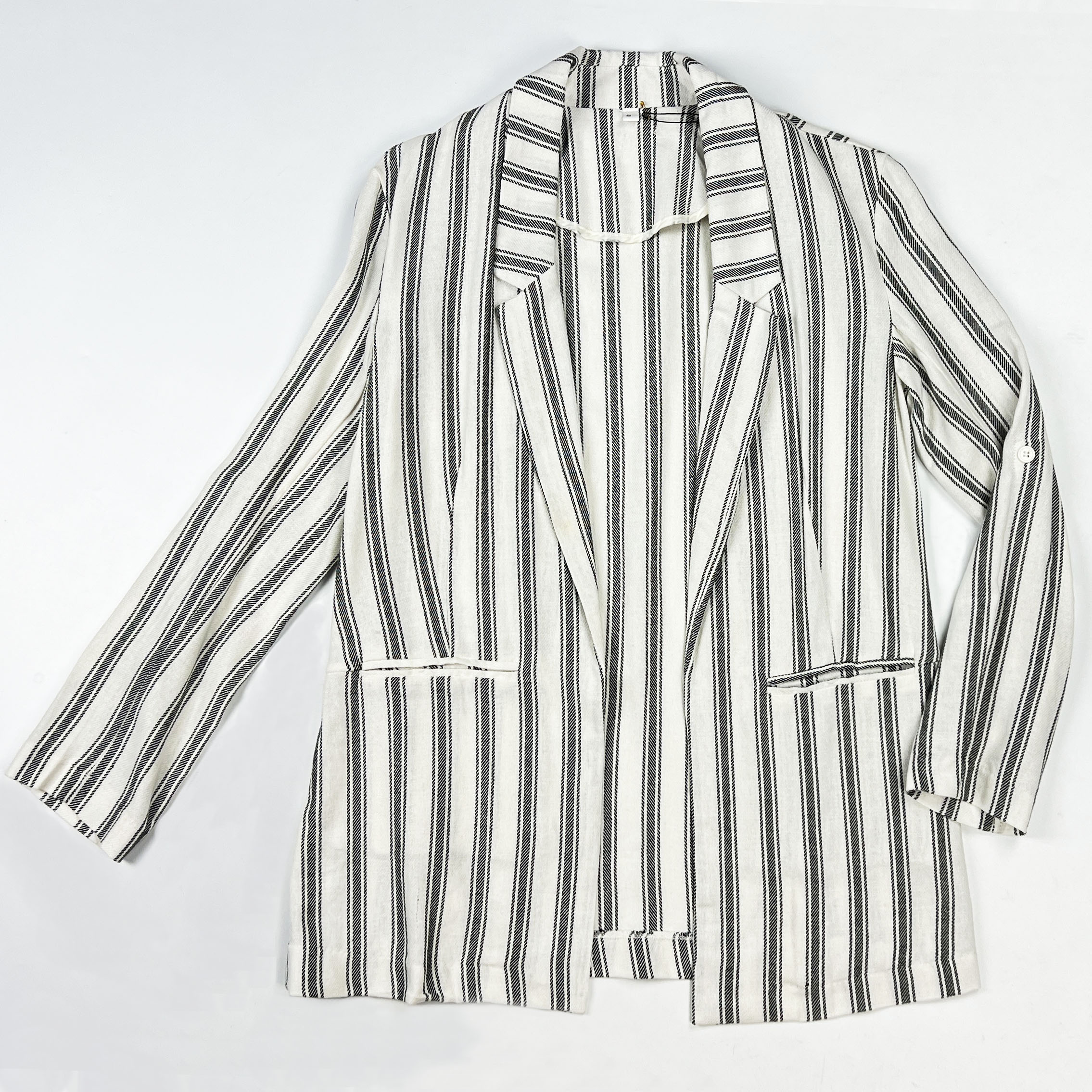 Пиджак длинный белый черные ребристые полосы скрытые карманы