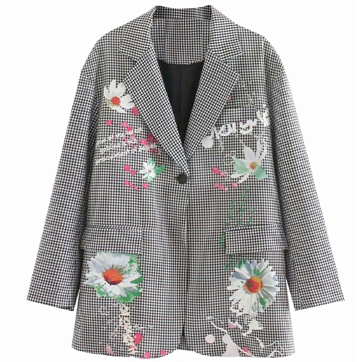 Пиджак мелкая чб клетка принт ромашки краска надписи