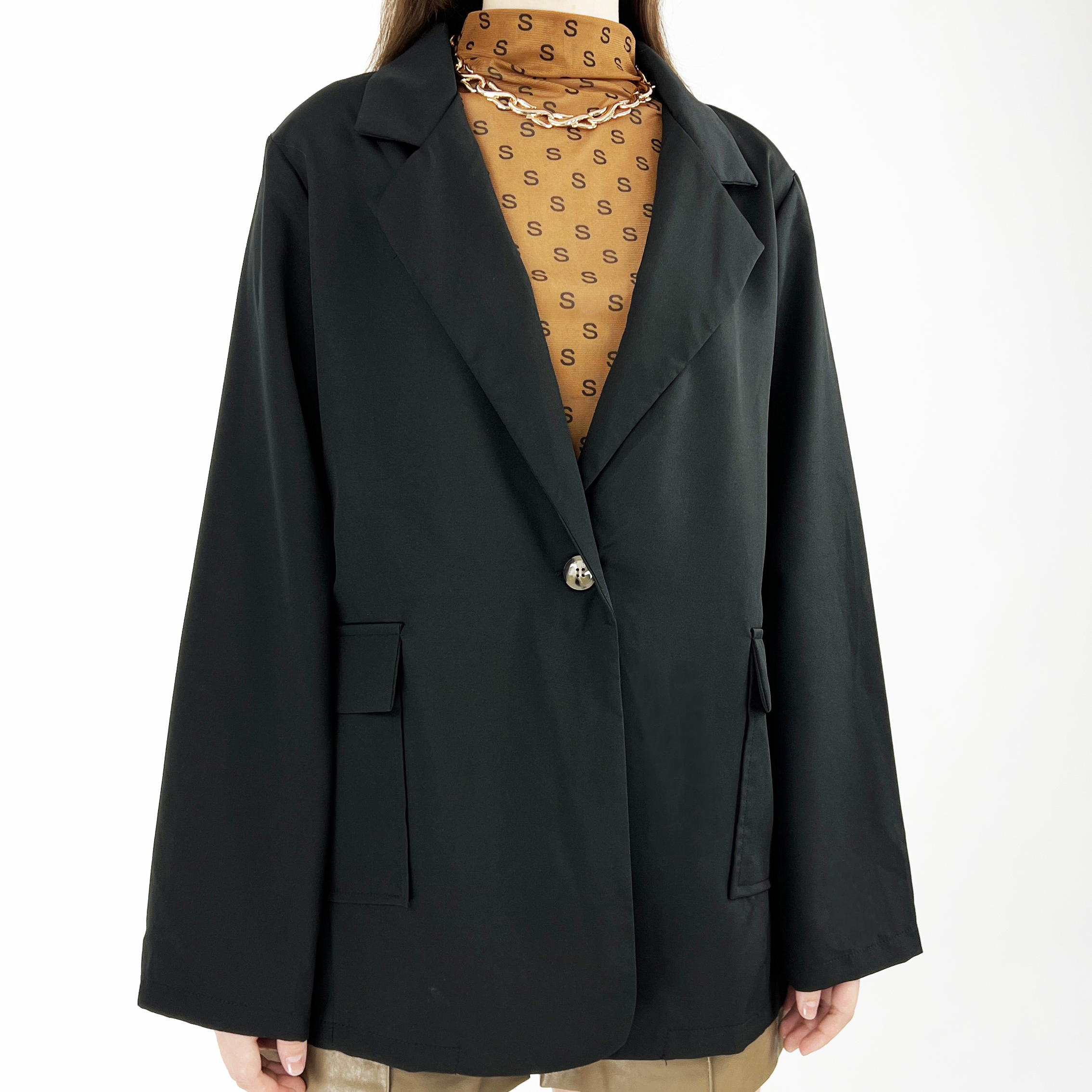 Пиджак широкий oversize 2 кармана по бокам 1 пуговица