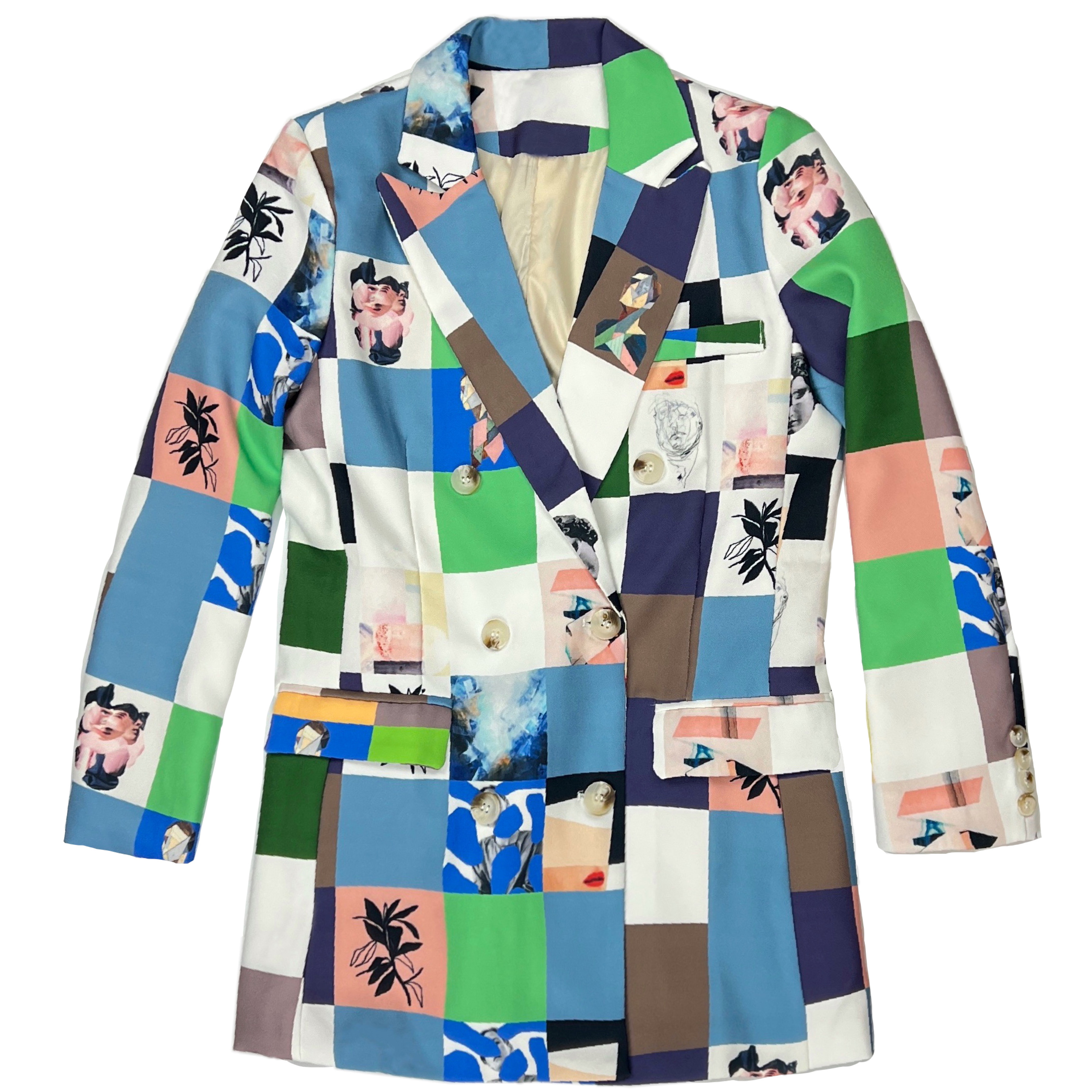 Пиджак длинный разноцветные клетки абстрактные портреты