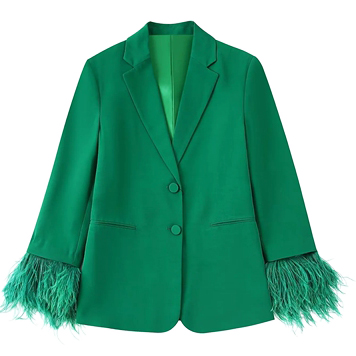 Пиджак темно-зеленый перья на манжетах (есть комплект)