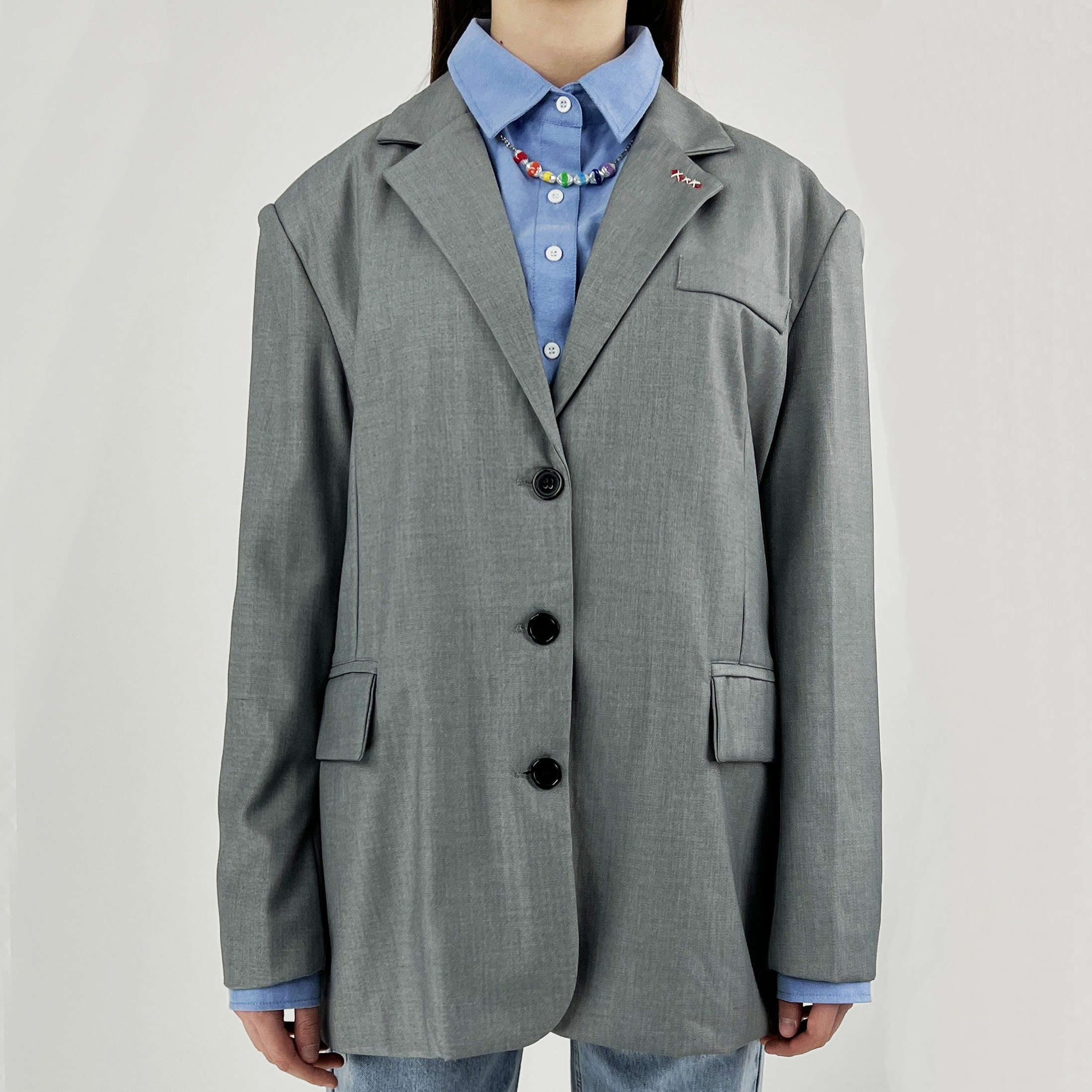 Пиджак oversize вышивка 3 белых крестика на красном SISTER
