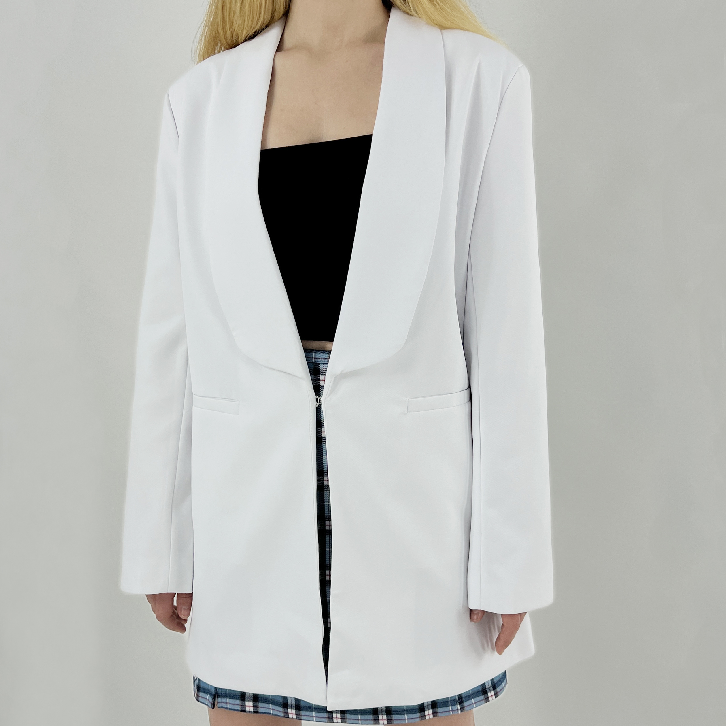 Жакет длинный белый широкие лацканы застежка крючок