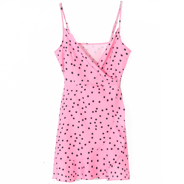 Платье мини на запах тонкие лямки горох волан по низу