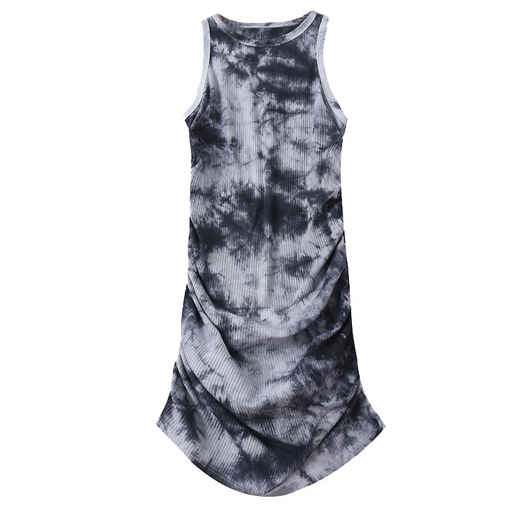 Платье майка стрейч по фигуре сборка размытый принт