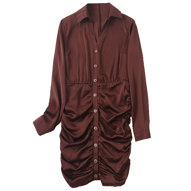 Платье атласное рубашка мини сборка на бедрах