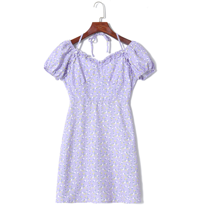Платье мини мелкие цветы рюши короткий рукав фонарик шов под грудью