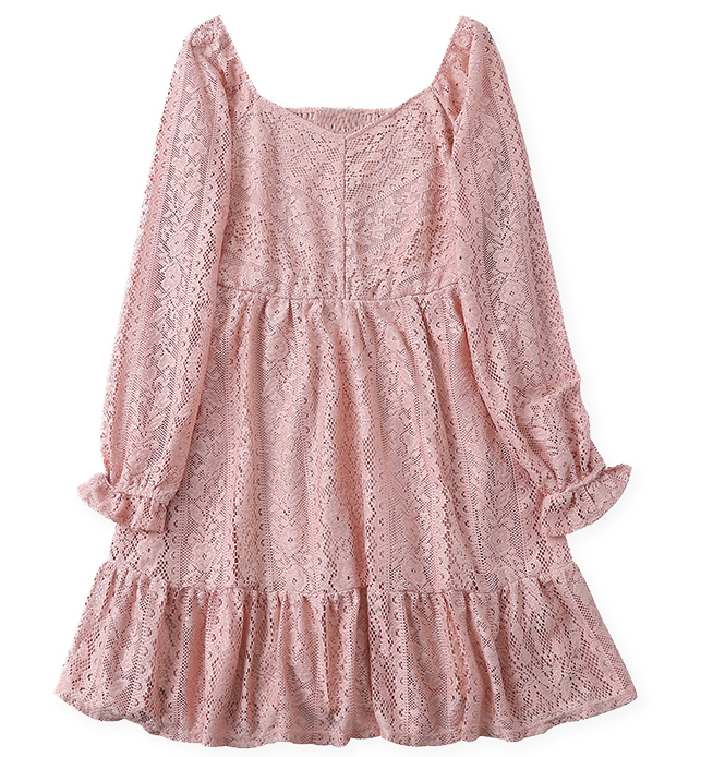 Платье куколка юбка клеш волан пыльно-розовое кружево