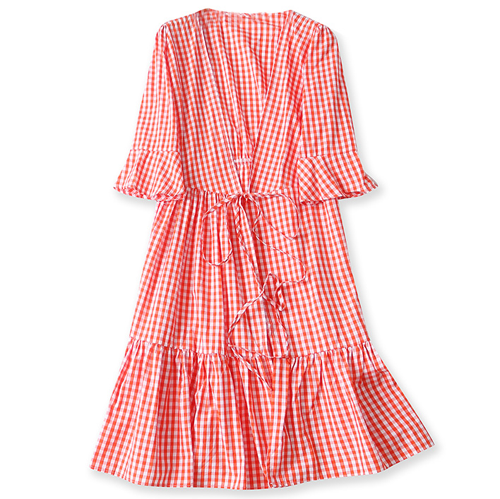 Платье на запах хлопок клетка виши воланы