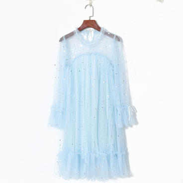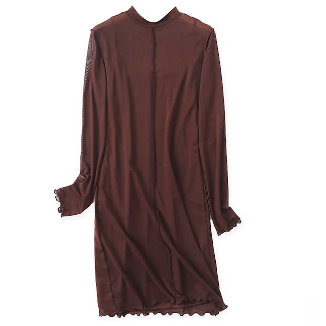 Платье из сетки под горло ворот шов по середине волнистые края