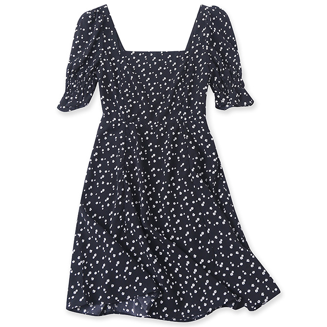 Платье шифон мелкие белые цветы рукав фонарик квадратный вырез