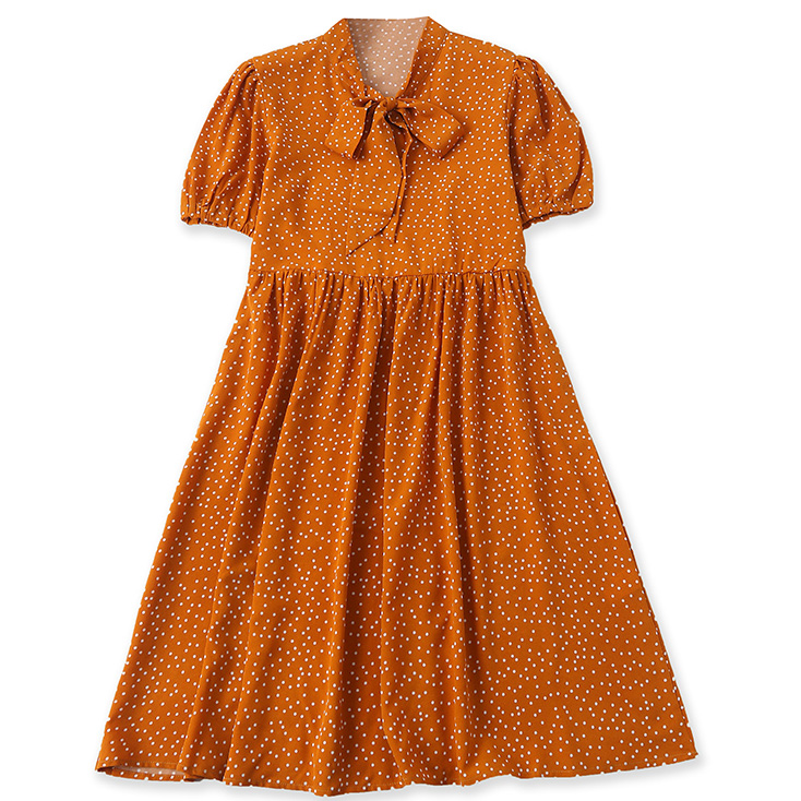 Платье шифон белый горошек бант на шее рукав фонарик