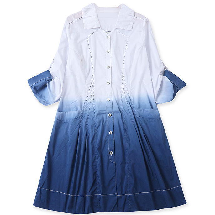 Платье рубашка клеш градиент от белого контраст строчки рукав подворот