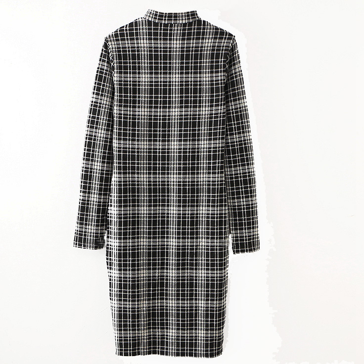 Платье по фигуре ворот стойка белая клетка на черном