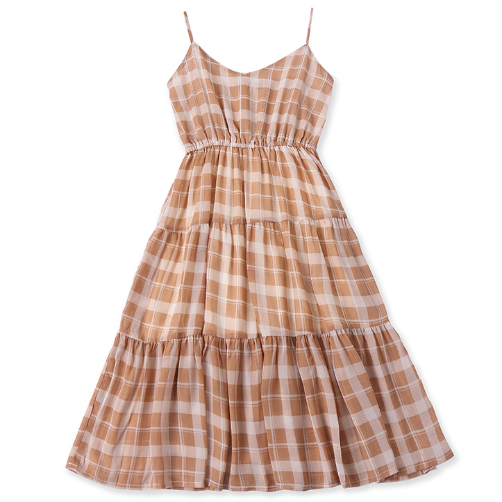Платье сарафан миди тонкие лямки клеш уровнями клетка