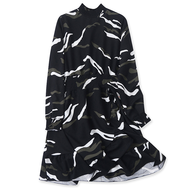 Платье шифон под горло на резинках волан на юбке (принт)
