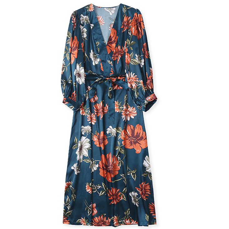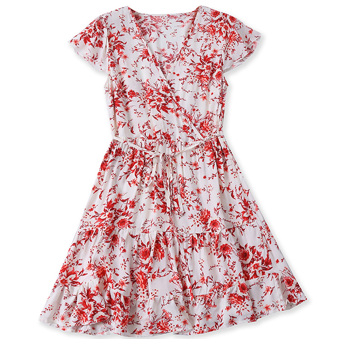 Платье миди шелк V-вырез на запах красные цветы + пояс