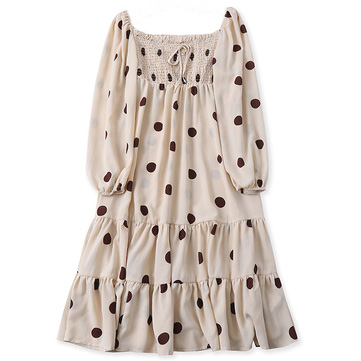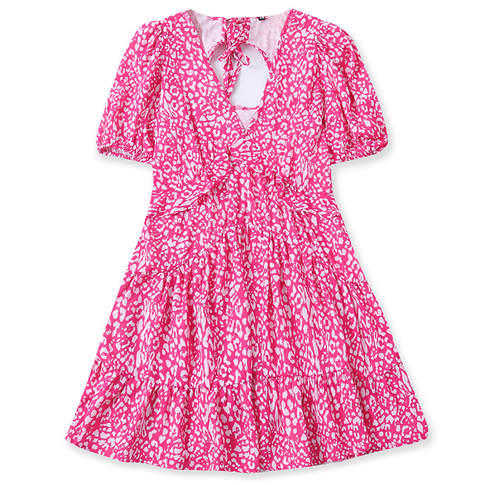 Платье мини талия на резинках юбка клеш V-вырез - пестрый узор круги