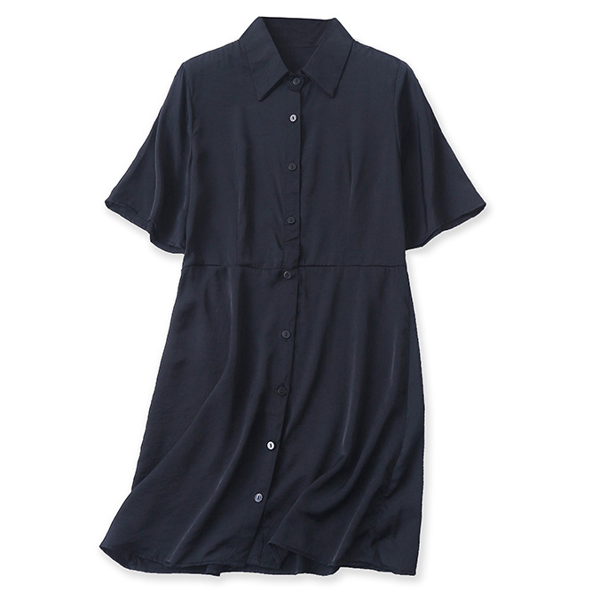 Платье рубашка на пуговицах короткий рукав клеш (черное)