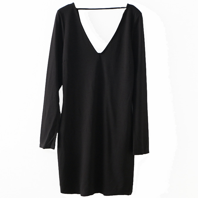 Платье мини стрейч длинный рукав глубокий V-вырез открытая спина
