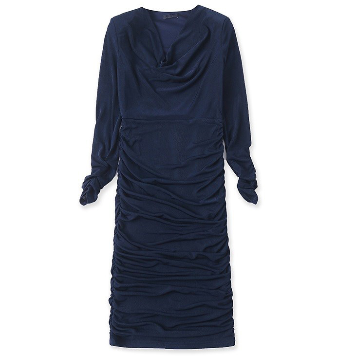 Платье миди по фигуре сборка на юбке и рукавах драпировка на вороте
